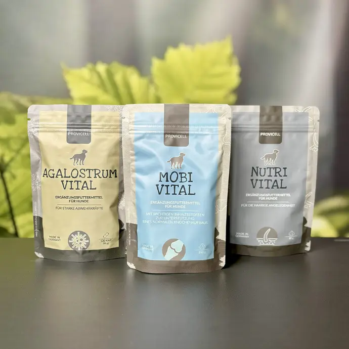 Die Komplettkur kombiniert unsere drei hochwertigen Ergänzungsfuttermittel für Hunde: EM Vital, Immun Vital und Nutri Vital. Diese sind aufeinander abgestimmt, um das Wohlbefinden deines Hundes ganzheitlich zu unterstützen – von der Stärkung der natürlichen Abwehr über eine gesunde Verdauung bis hin zu glänzendem Fell und vitaler Haut.